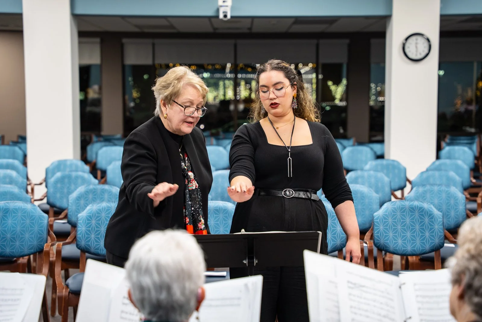 Each year, JMU students have the unique opportunity to conduct their first choral pieces alongside VMRC residents before entering their student teaching experiences. For the students, it’s a chance to apply their learning in a real-world setting, gaining confidence as conductors and leaders. For VMRC residents, it’s a joyful way to share their experience, support the next generation of educators, and continue growing through artistic expression.